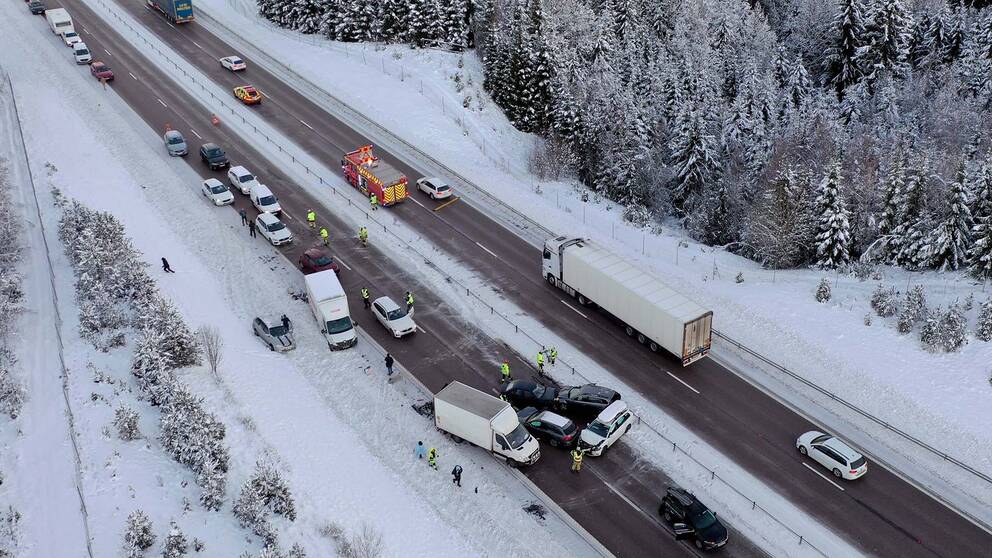 10 Bilar Inblandade I Dubbla Trafikolyckor Utanfor Boras Svt Nyheter